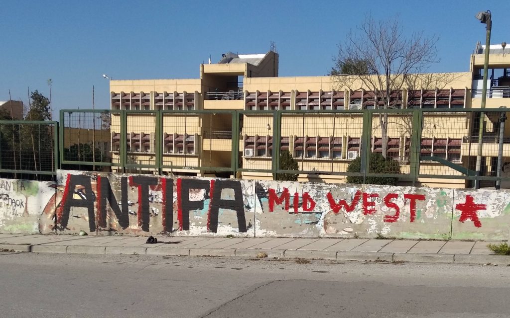 Roller graffiti που έκανε το antifa mid-west το Δεκέμβριο του 2022 στο 2ο ΓΕΛ Νεάπολης, στην περιοχή Στρεμπενιώτη.